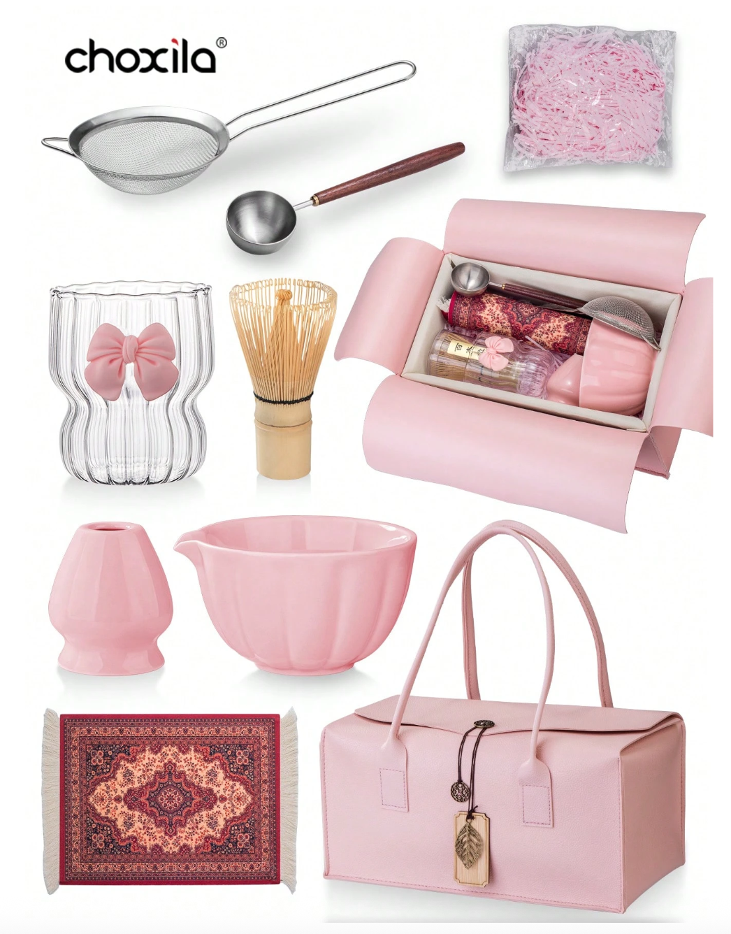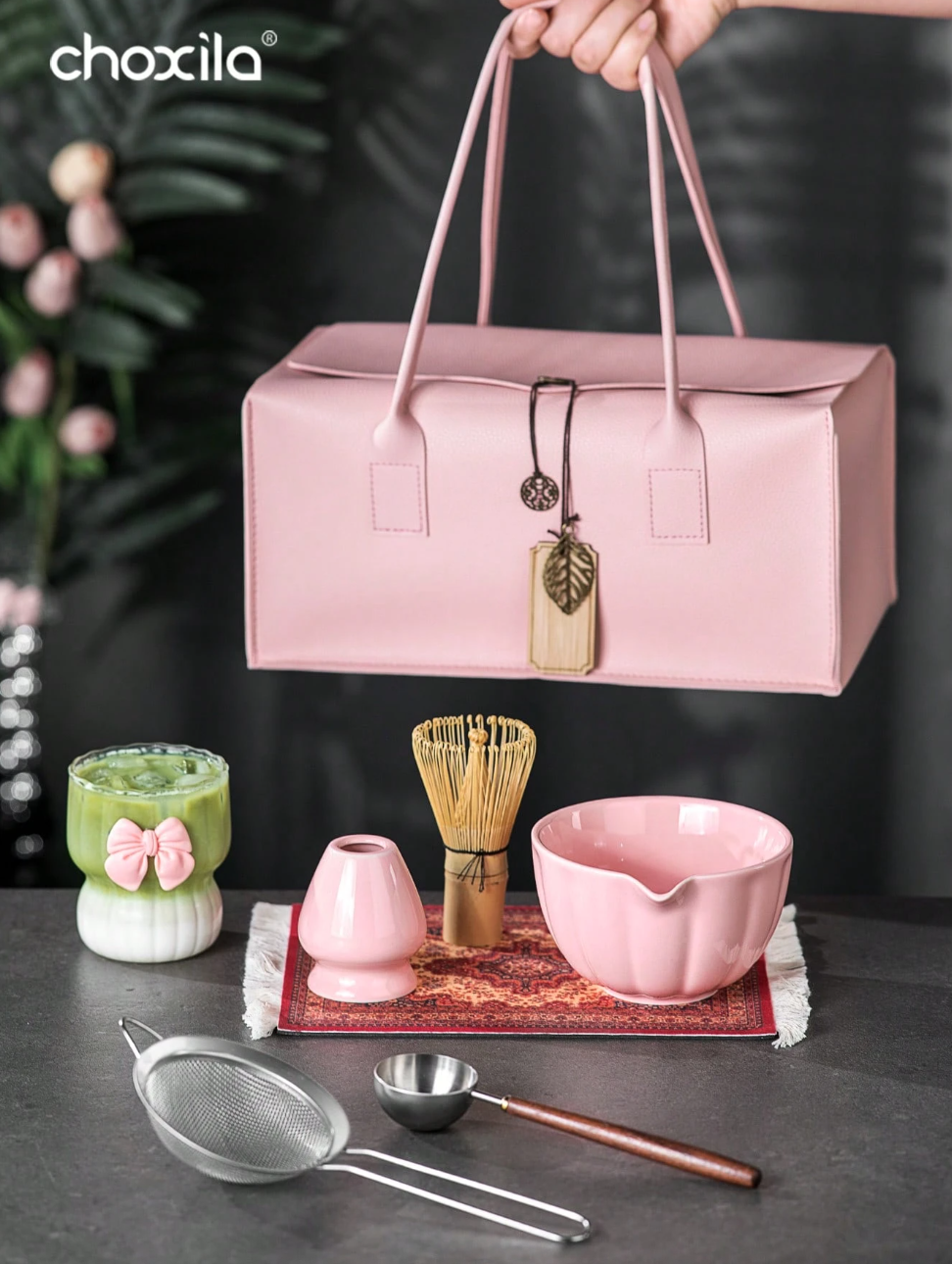 + Free Shippingطقم هدايا ماتشا مع حقيبة، يشمل وعاء ماتشا، خفاقة ماتشا من الخيزران، ملعقة شاي، حامل الخفاقة، منخل ماتشا،كوب شاي، وسادة شاي