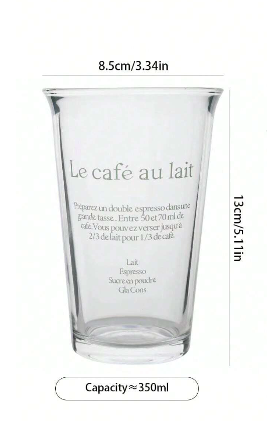 أضف لمسة باريسية إلى طقوس قهوتك مع كوب “Le café au lait” الزجاجي العصري. يتميز بتصميم بسيط ونقش فرنسي أنيق يوضح نسب إعداد اللاتيه، مما يجعله مثاليًا لمحبي التفاصيل والستايل الأوروبي في تقديم المشروبات.
